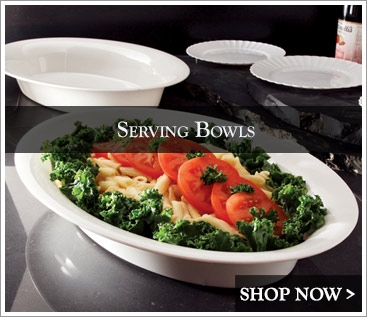 All the serving pieces the one might need to have an elegant wedding and party. Wholesale elegant plastic serveware has plastic trays in many colors and sizes, ice pitches and plastic buckets, and many sizes of disposable plastic serving bowls.